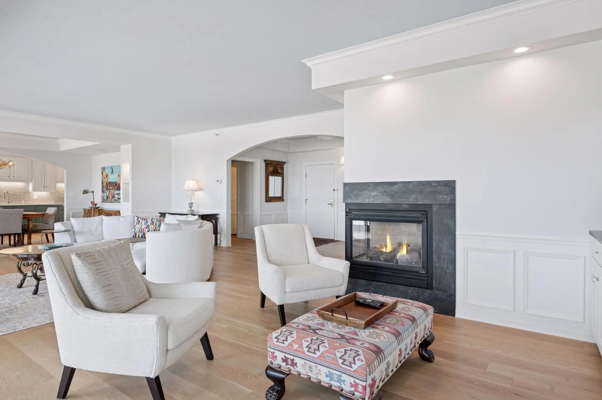 Awesome breathtaking views and sunsets from this stunning city condo. Grand sized living room is now open to updated and upgraded kitchen. New rich hardwood floors throughout. Sumptuous primary suite with complete remodel of promary bath with separate shower and soaking tub plus bay window and private balcony. Marble fireplace and wonderful new custom case piece with wet bar. New lighting, fresh paint, all this and more. As good as it gets! Loring Green amenities are beyond compare. Move in and enjoy the new Loring Green Plaza and great lawn.
