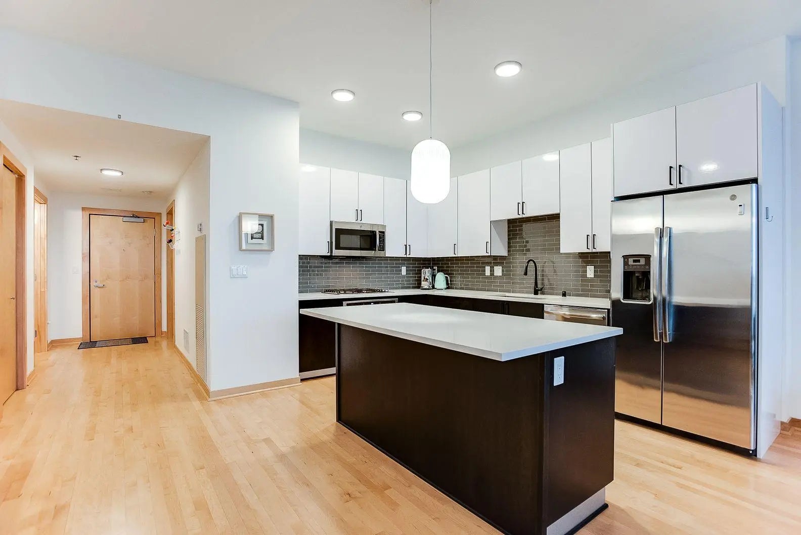 South-facing and loaded with upgrades, this 2-bedroom, 2-bath condo at The Legacy offers bright, modern living in the heart of the Mill District. The open kitchen features quartz countertops, upgraded cabinetry, stainless appliances, and a large island perfect for entertaining. Spacious living and dining areas are framed by oversized windows that flood the home with natural light, and a private balcony extends your living space outdoors. The primary suite offers a walk-in closet and a private bath with dual sinks and glass shower. A second bedroom, full bath, and in-unit laundry add comfort and convenience. Enjoy a full range of building amenities including a fitness center, game room, community lounge, pet grooming station, car wash, pool, hot tub, sauna, and a golf simulator. Steps to the river, parks, trails, and the city’s best dining and entertainment.