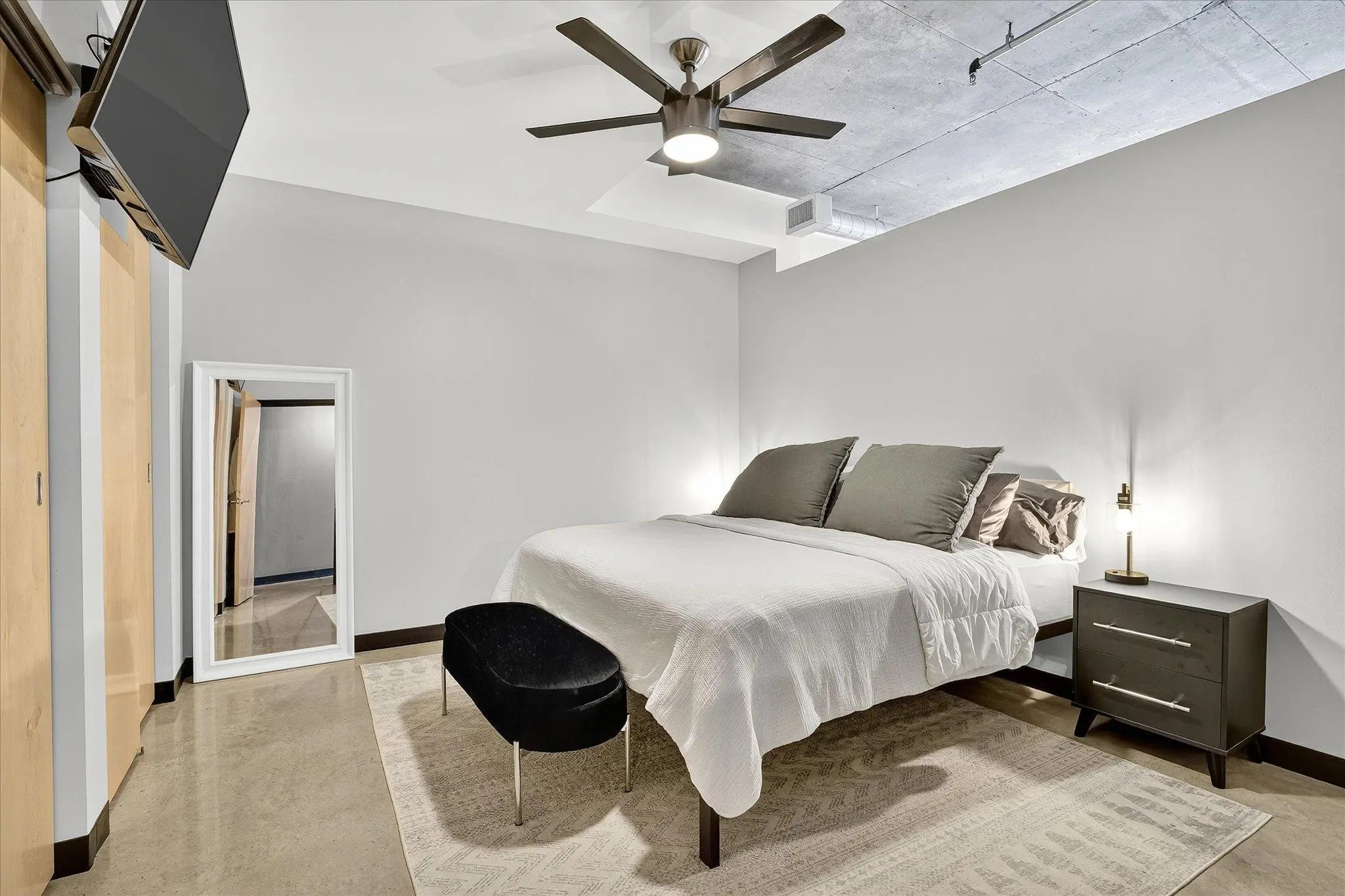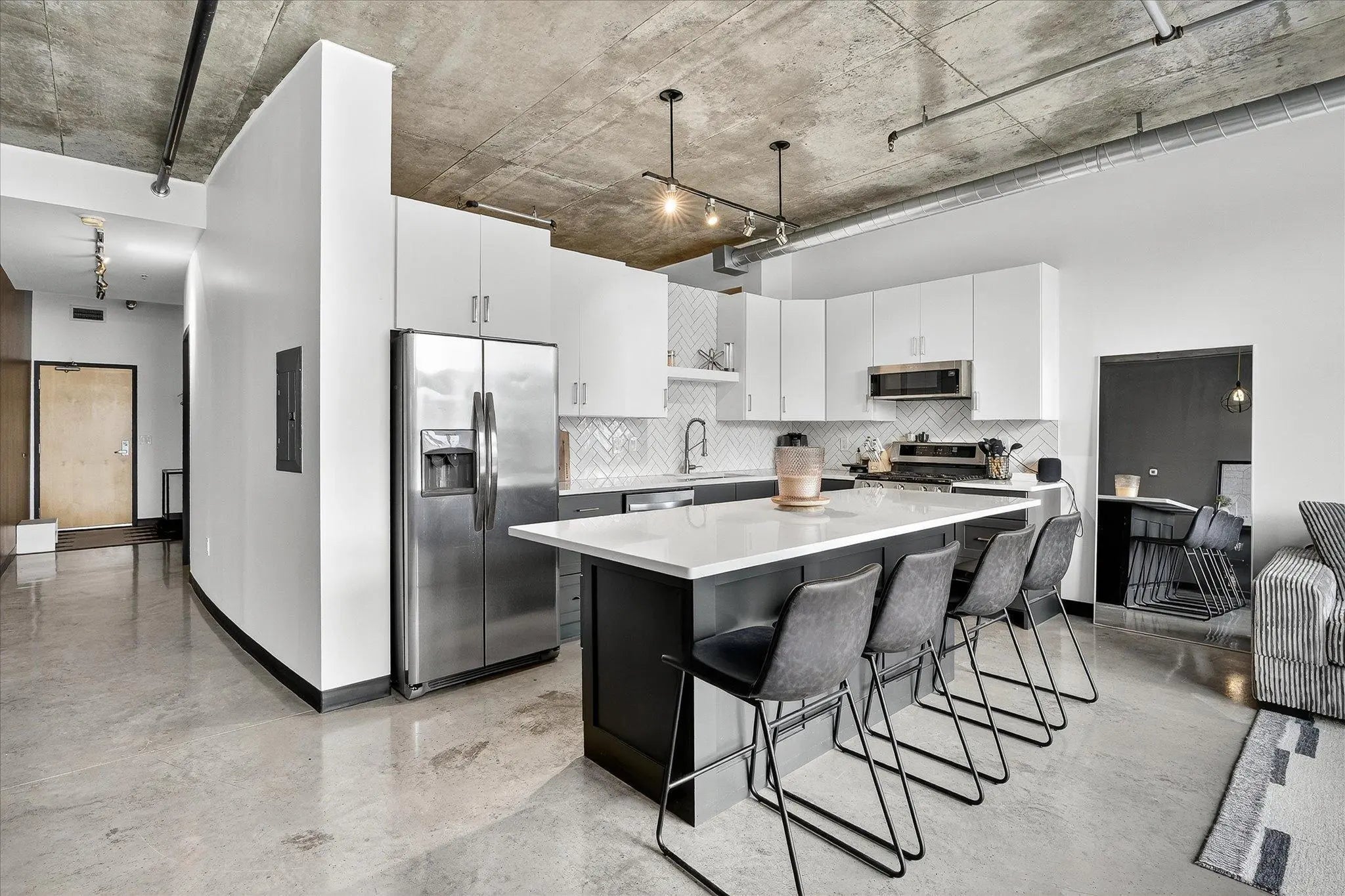Welcome to this stunning 8th floor condo in the highly sought-after North Loop, offering a perfect blend of modern style, thoughtful updates, and vibrant city living. The open-concept floor plan features polished concrete floors, tall ceilings, and expansive windows with blackout shades that fill the home with natural light while offering privacy when desired. The updated kitchen showcases sleek two-tone cabinetry, quartz countertops, stainless steel appliances, a stylish tile backsplash, and a spacious center island with seating. The adjoining living area is ideal for relaxing or entertaining, with direct access to a private balcony overlooking the city. The spacious bedroom includes dual closets with custom storage systems and space for a king bed. The updated bathroom offers modern finishes, a quartz vanity, matte black fixtures, and a tub/shower combo. For convenience, the condo also includes an in-unit washer and dryer. This home comes with heated underground parking and access to fantastic amenities. Residents enjoy a rooftop fitness center with skyline views, a community lounge with pool table and entertaining space, and expansive outdoor green space with walking paths, seating, and landscaped courtyards. Perfectly located, you’ll be just steps from the city’s best restaurants, coffee shops, entertainment, and Target Field.