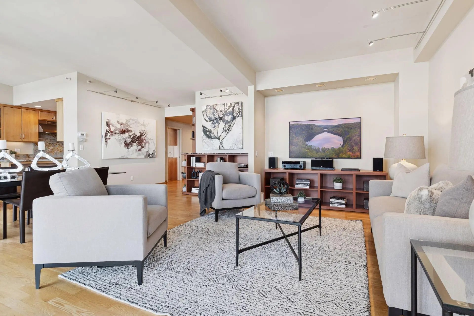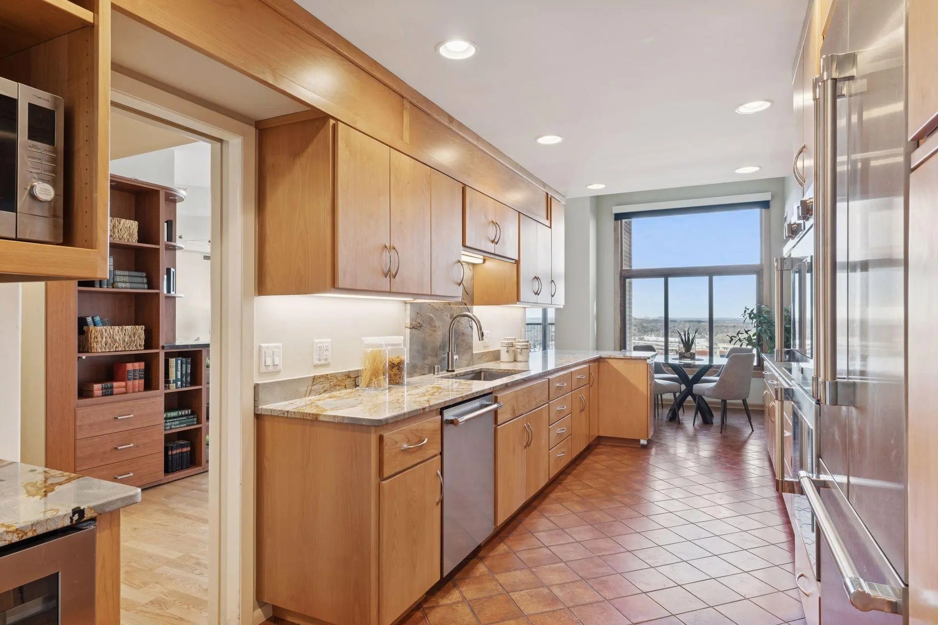 Sophisticated and sun-filled city home with soaring vaulted ceilings. Gleaming hardwood floors and desirable open floor plan. Stunning gourmet kitchen features double wall ovens, stone countertops and custom cabinetry. Elegant dining area defined by wonderful custom built-ins. Primary suite boasts new luxurious renovated spa bath with floor-to-ceiling tile and rain shower. Enjoy quiet sunset views from the expansive tiled three-season porch. Loring Green's amenities are beyond compare. In ideal downtown location...stroll to all downtown has to offer!